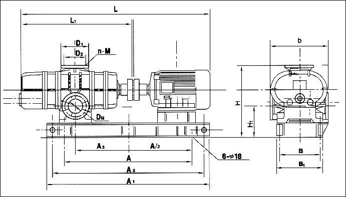 直联型三叶罗茨鼓风机外型尺寸及安装尺寸图