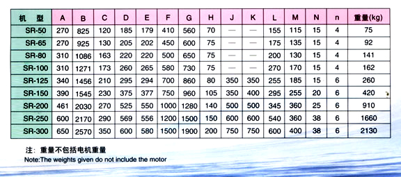SR50、SR65、SR80、SR100、SR125、SR150、SR200、SR250、SR300